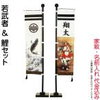 五月人形 フジサン鯉 名前旗 室内用 室内飾り 若武者&鯉セット ちりめん 家紋・名前入れ代金込み kb5-t23