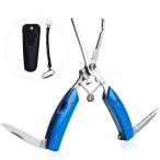 高性能 フィッシングプライヤー 【ブルー/シルバー】 スプリットリング プライヤー 釣り用ペンチ フィッシュグリップ ホルダー 安全ロープ付き 専用ケース